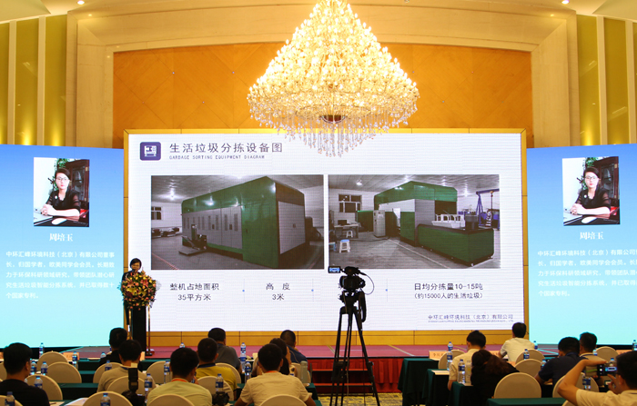 周培玉董事长发表《源头垃圾分拣系统助力美丽中国建设》演讲,围绕垃圾处理问题,从“源头分拣”到“循环利用”破题“分类难”做了详细阐述,以分拣设备为抓手,推进垃圾分类,推动绿色发展。并向与会嘉宾介绍了中环汇峰以“零废”理念研发生产的生活垃圾分拣设备以及中环汇峰循环利用产业园愿景规划。